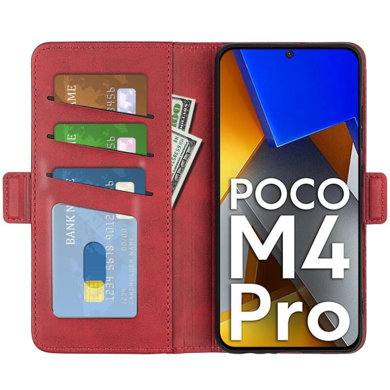 Για Xiaomi Poco M4 Pro 4G διπλής όψης μαγνητική πόρπη οριζόντια Flip δερμάτινη θήκη τηλεφώνου (Κόκκινο)