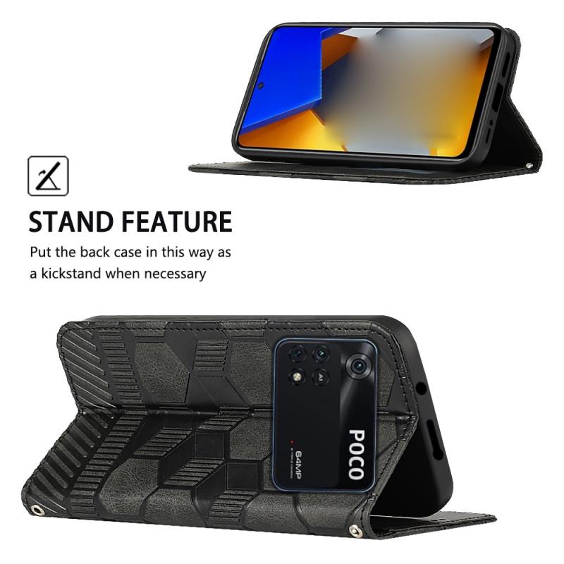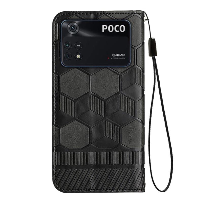Θήκη Xiaomi Poco M4 Pro 4G Δερμάτινη Μαγνητική με Υφή Μπάλας Ποδοσφαίρου (Μαύρο)