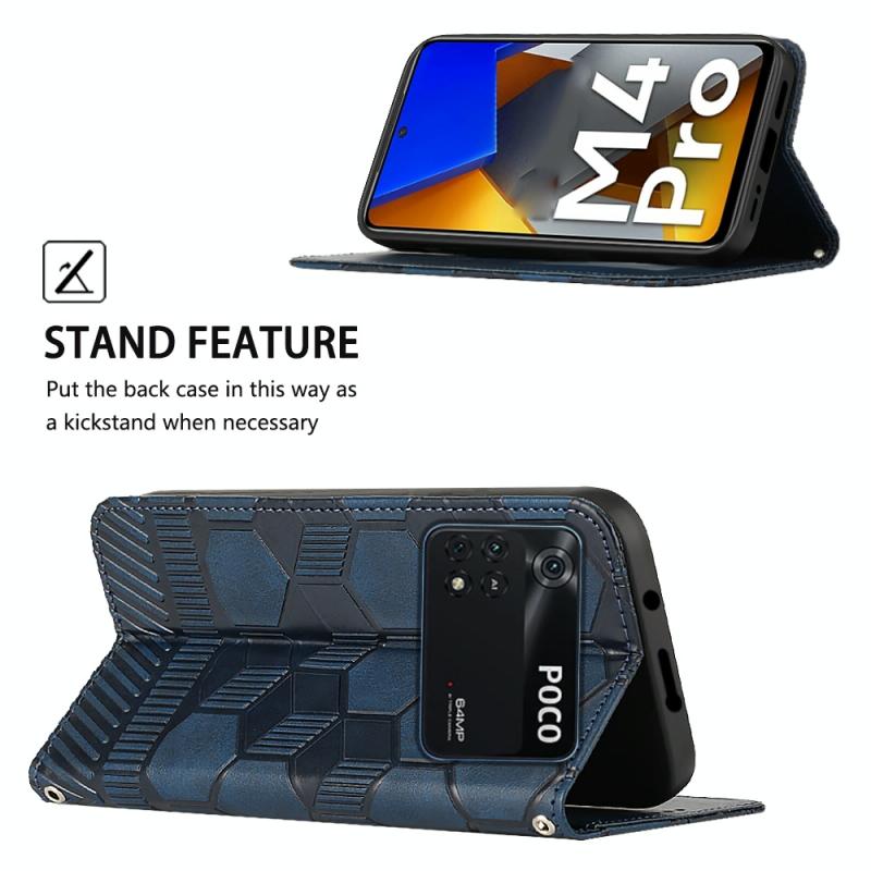 Θήκη Xiaomi Poco M4 Pro 4G Δερμάτινη Μαγνητική με Υφή Μπάλας Ποδοσφαίρου (Σκούρο Μπλε)