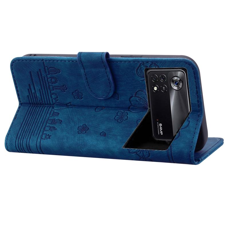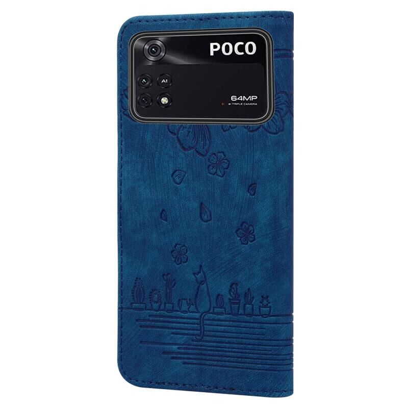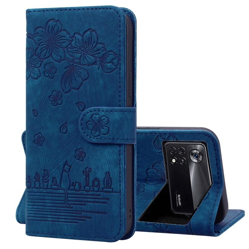 Θήκη δερμάτινη με σχέδιο Sakura Cat για Xiaomi Poco M4 Pro 4G Global (Ρουά Μπλε)
