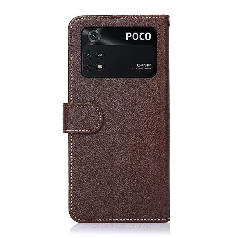 Για Xiaomi Poco M4 Pro 4G KHAZNEH Δερμάτινη Θήκη με Υφή Litchi RFID (Καφέ)