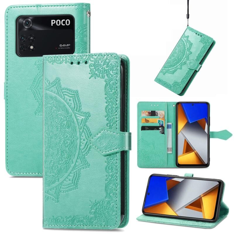 Για Xiaomi Poco M4 Pro 4G Mandala λουλούδι ανάγλυφο ανάγλυφο Flip δέρμα υπόθεση τηλεφώνου (πράσινο)