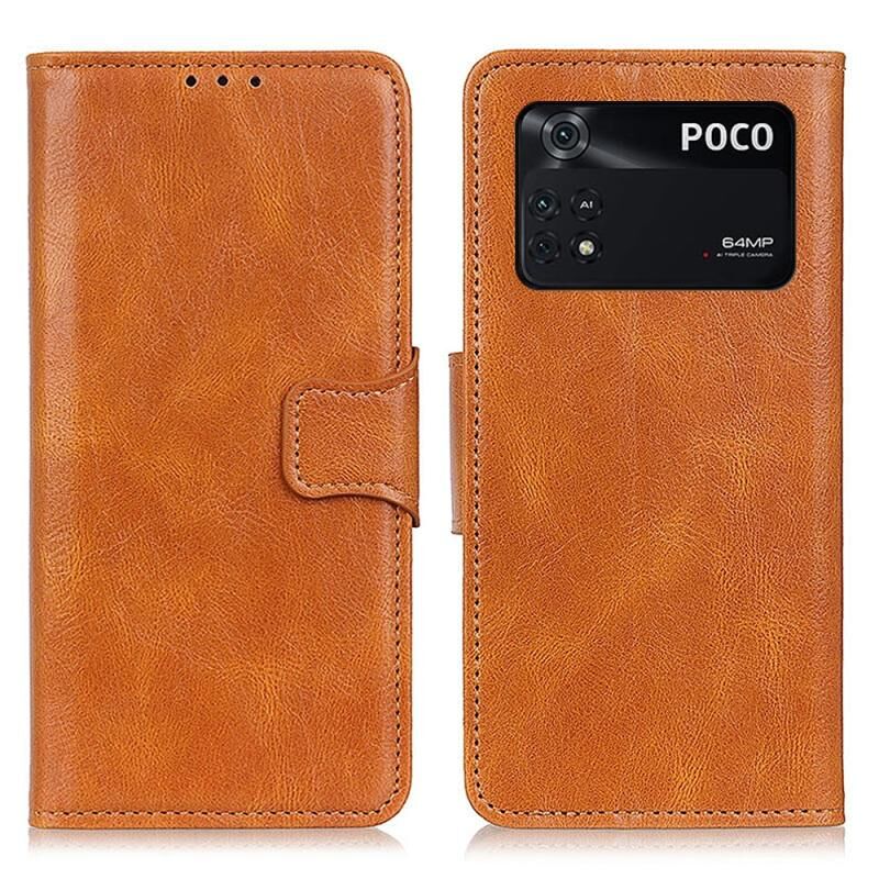 Θήκη τηλεφώνου από δέρμα με οριζόντιο άνοιγμα για Xiaomi Poco M4 Pro 4G, με υφή Crazy Horse, με βάση στήριξης, θήκες για κάρτες και πορτοφόλι (Καφέ)