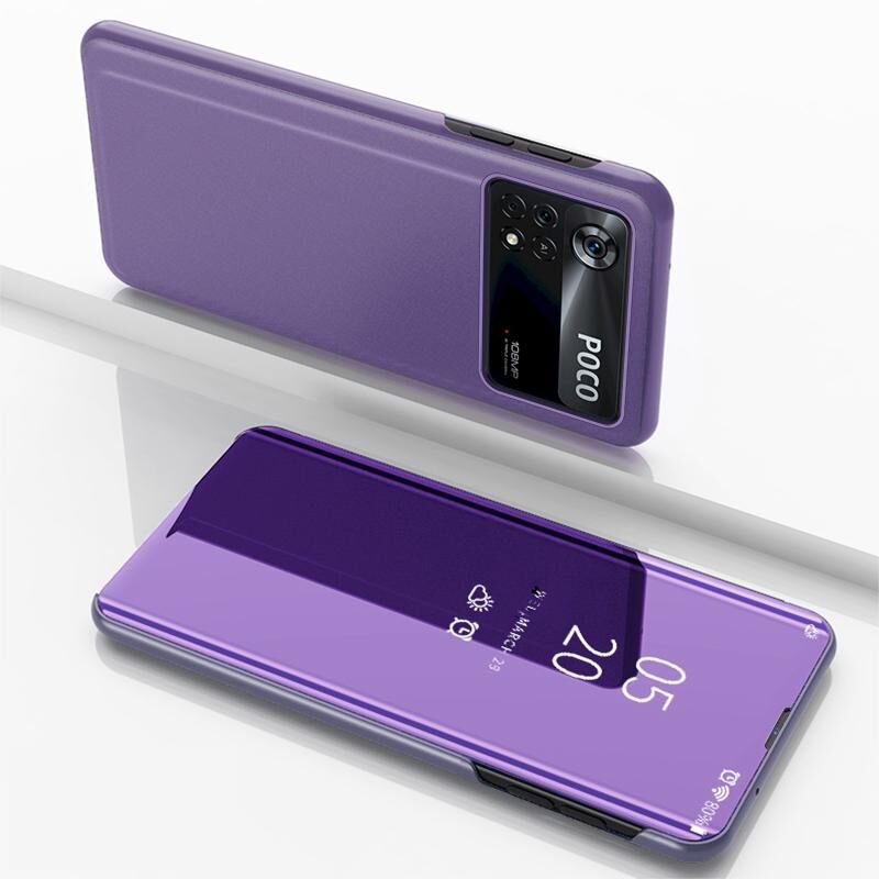 Θήκη δέρματος με οριζόντιο άνοιγμα και καθρέφτη για Xiaomi Poco M4 Pro 4G (Μαύρο) με βάση στήριξης.