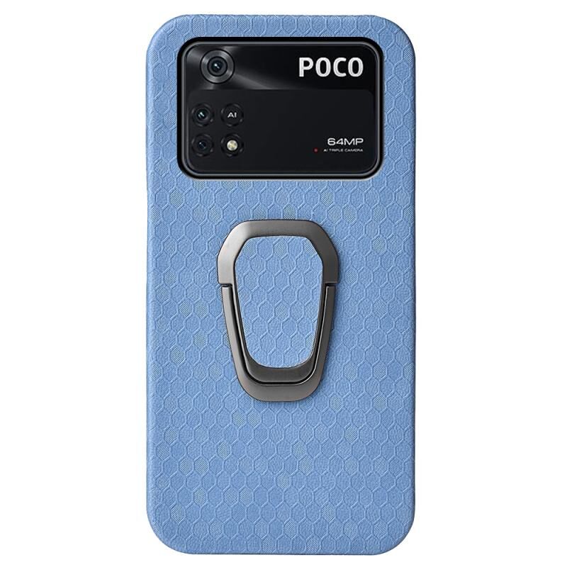 Για Xiaomi Poco M4 Pro 4G δαχτυλίδι κάτοχος κηρήθρα PU υπόθεση τηλεφώνου (ανοιχτό μπλε)