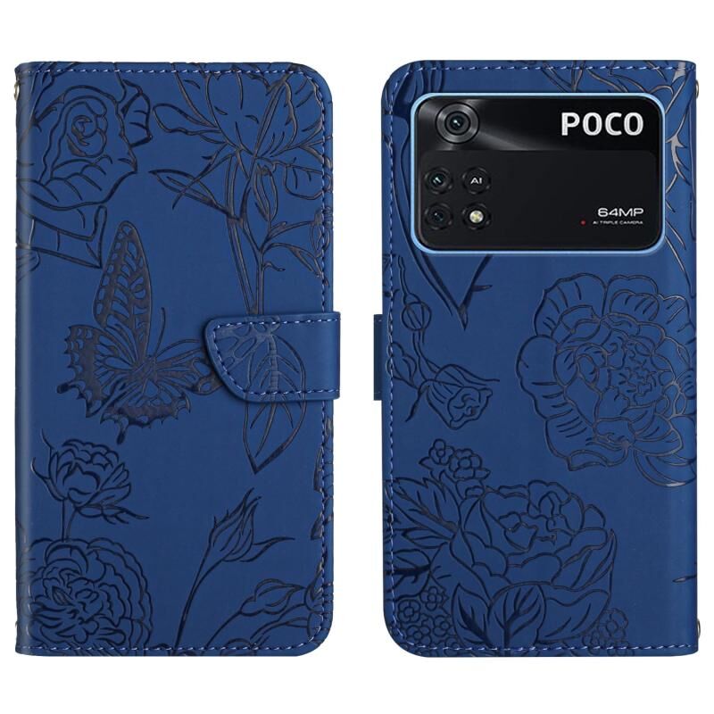 Θήκη τηλεφώνου από δέρμα με ανάγλυφο σχέδιο πεταλούδας και παιώνιας για Xiaomi Poco M4 Pro 4G (Κόκκινο)