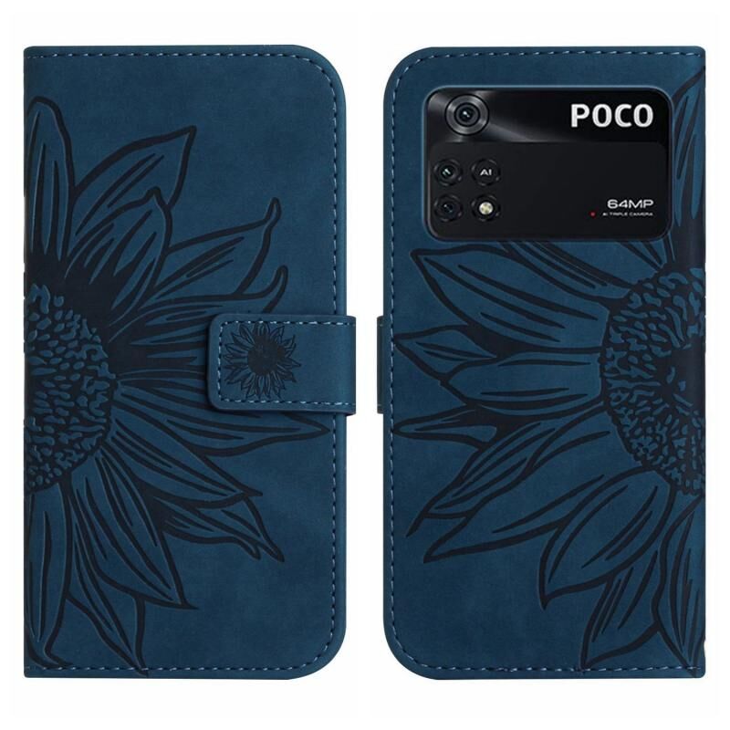 Θήκη τηλεφώνου από δέρμα με σχέδιο ηλιοτρόπιου και αίσθηση δέρματος για Xiaomi Poco M4 Pro 4G, με λουρί (Κρασί)