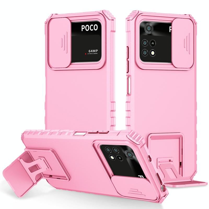 Για Xiaomi Poco M4 Pro 4G Στερεοσκοπική κάτοχος συρόμενη Camshield υπόθεση τηλεφώνου (ροζ)