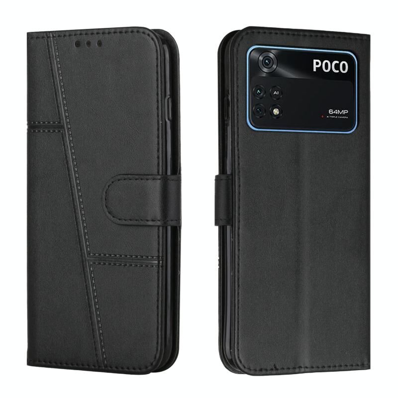 For Xiaomi Poco M4 Pro 4G Stitching Calf Texture Buckle Leather Phone Case(Black)