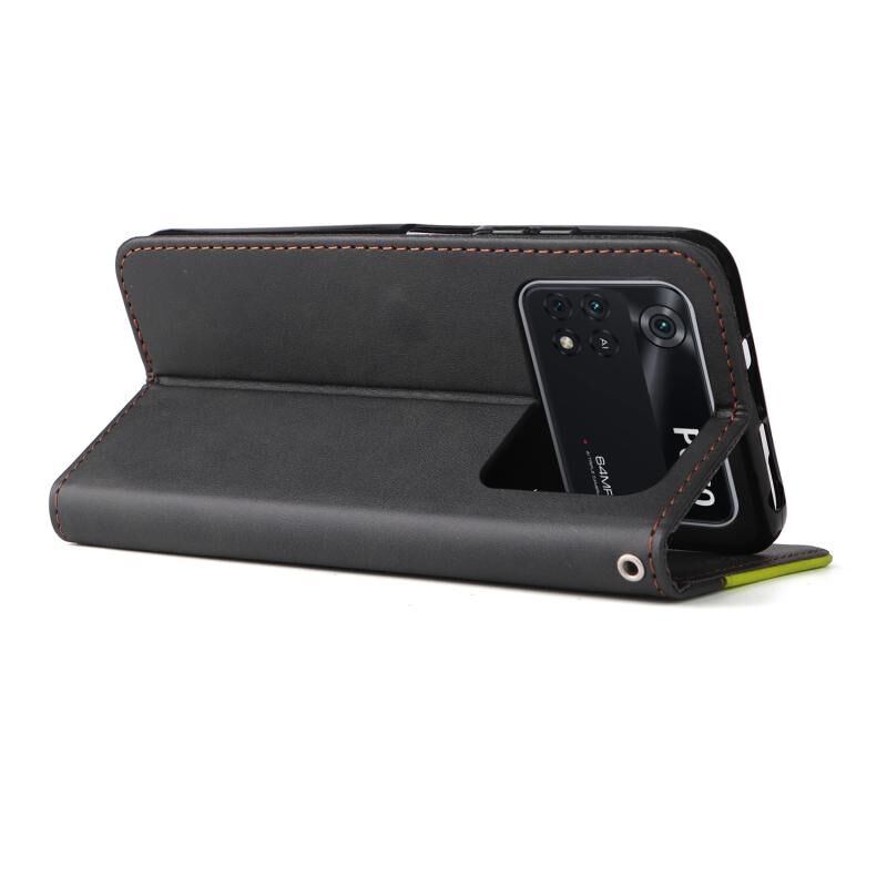 Θήκη τηλεφώνου από δερματίνη PU με ραφές και χρώματα για Xiaomi Poco M4 Pro 4G (Κόκκινο)