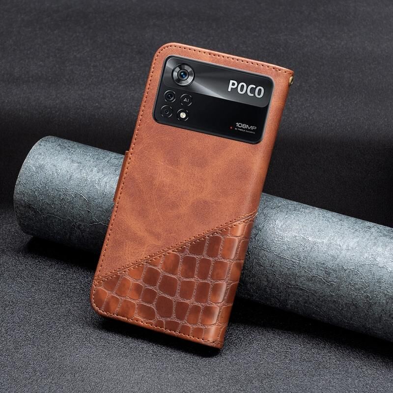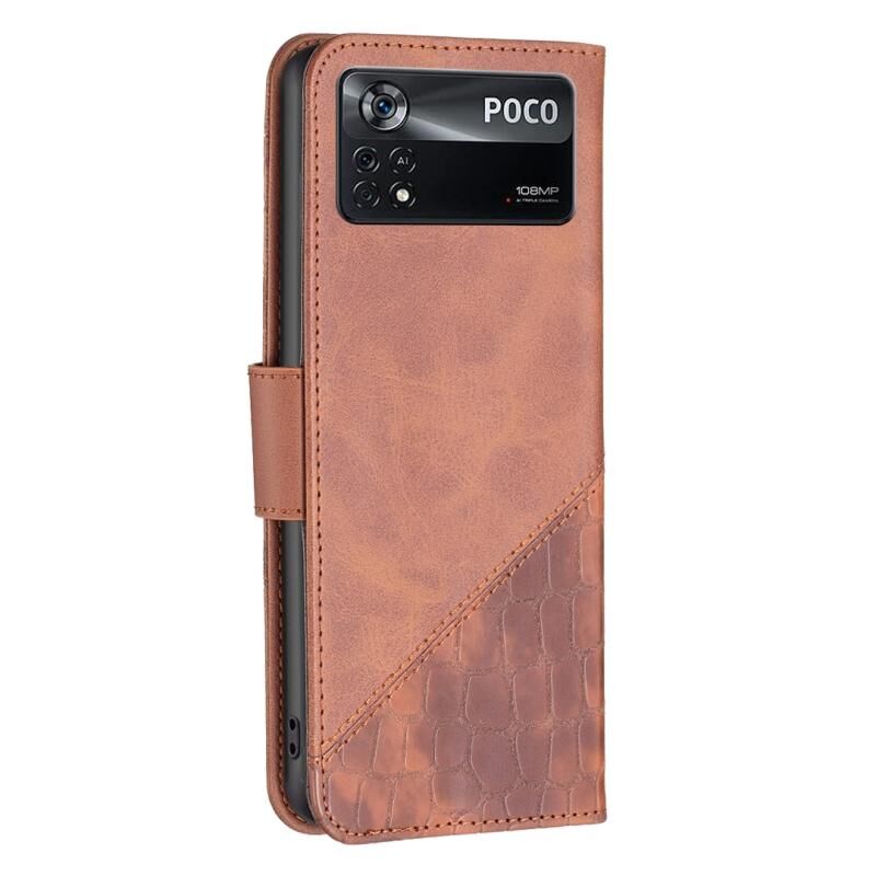 Θήκη τηλεφώνου δερμάτινη με υφή κροκόδειλου και χρωματικό σχέδιο για Xiaomi Poco M4 Pro 5G (Μαύρο)