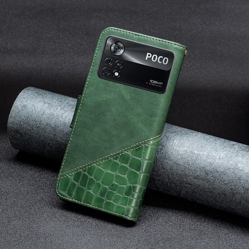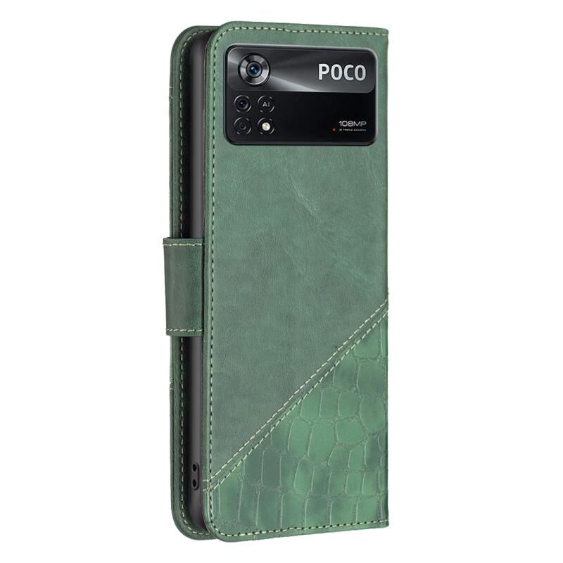 Θήκη τηλεφώνου δερμάτινη με υφή κροκόδειλου και χρωματικό σχέδιο για Xiaomi Poco M4 Pro 5G (Μαύρο)