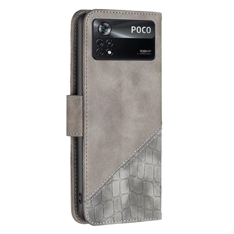 Θήκη τηλεφώνου δερμάτινη με υφή κροκόδειλου και χρωματικό σχέδιο για Xiaomi Poco M4 Pro 5G (Μαύρο)