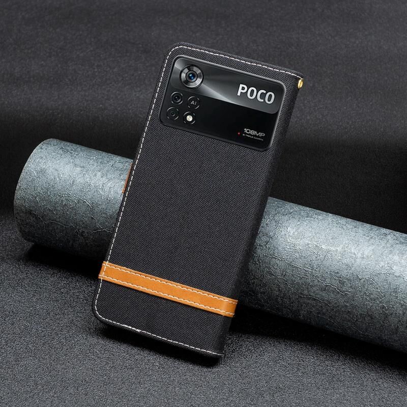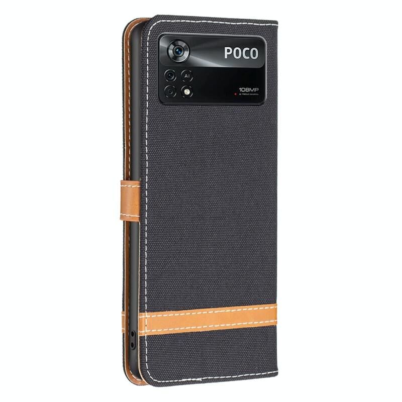 For Xiaomi Poco M4 Pro 5G Color Block Denim Texture Leather Phone Case(Black)