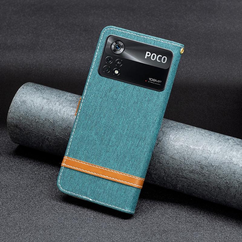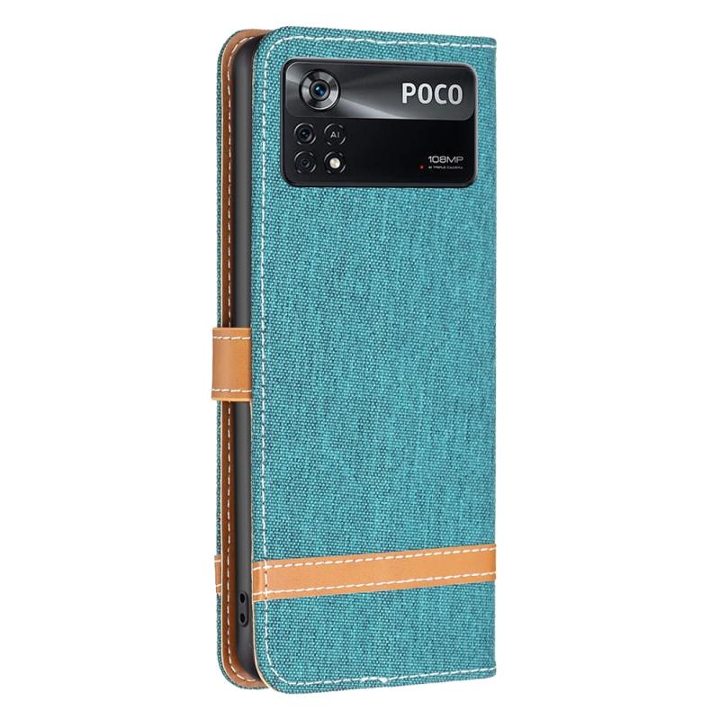 For Xiaomi Poco M4 Pro 5G Color Block Denim Texture Leather Phone Case(Green)