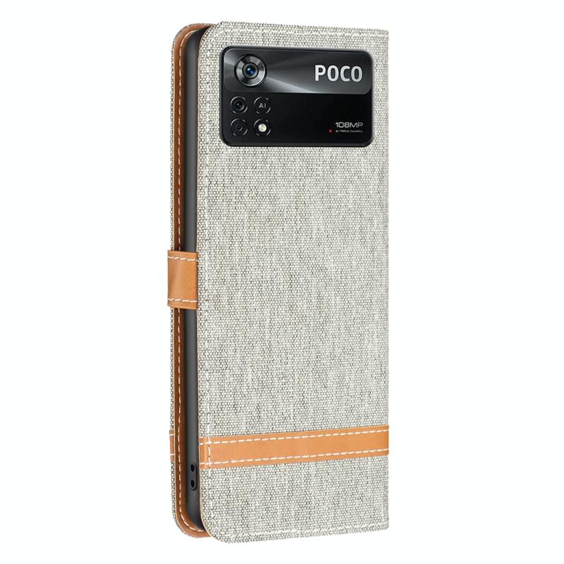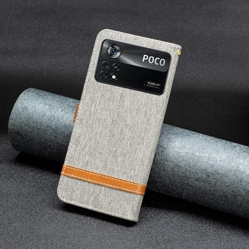 Θήκη τηλεφώνου Xiaomi Poco M4 Pro 5G με υφή τζιν και δερμάτινη υφή Color Block (Μαύρο)