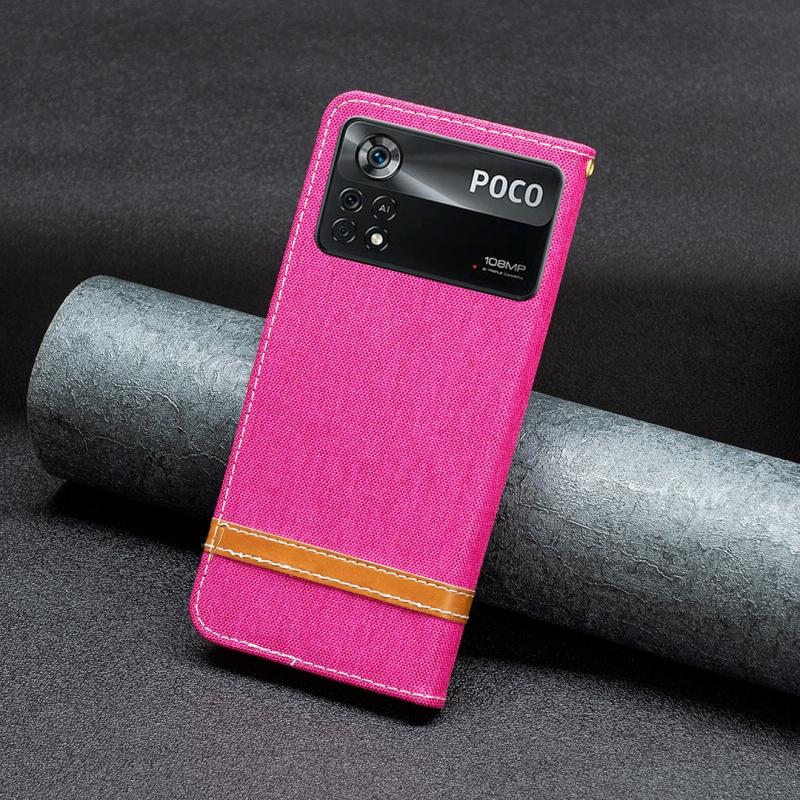 Θήκη τηλεφώνου Xiaomi Poco M4 Pro 5G με υφή τζιν και δερμάτινη υφή Color Block (Μαύρο)