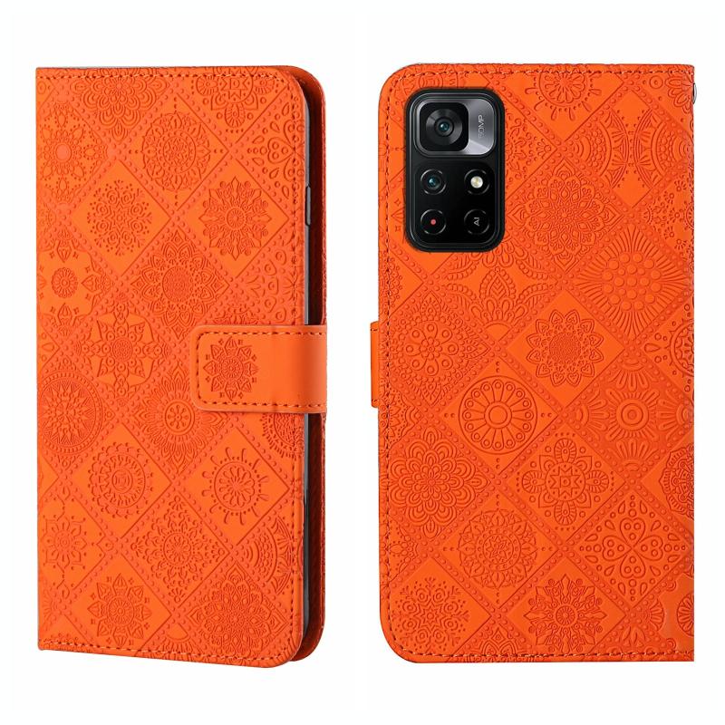 Θήκη τηλεφώνου δερμάτινη με ανάγλυφο σχέδιο εθνοτικού στυλ για Xiaomi Poco M4 Pro 5G (Καφέ)