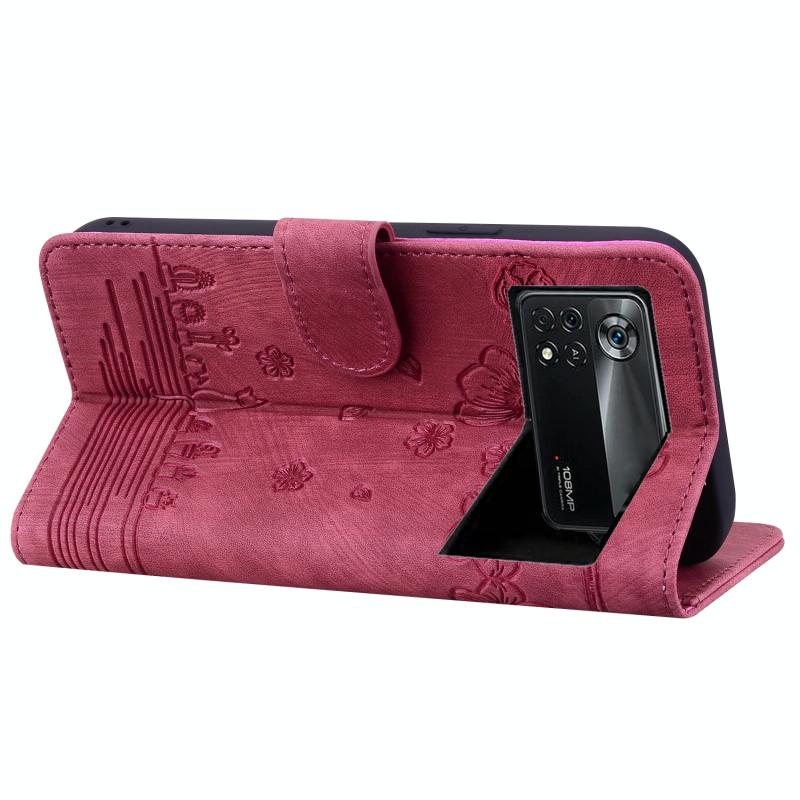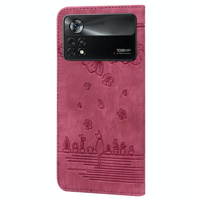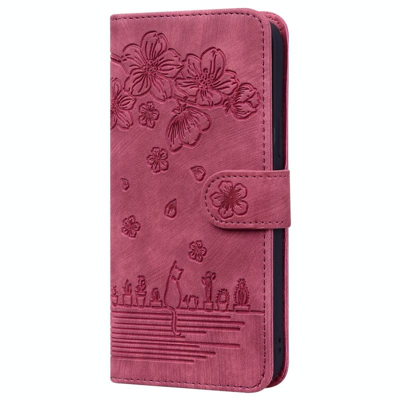 Θήκη δερμάτινη με σχέδιο Sakura Cat για Xiaomi Poco M4 Pro 5G Global (Μπορντό)