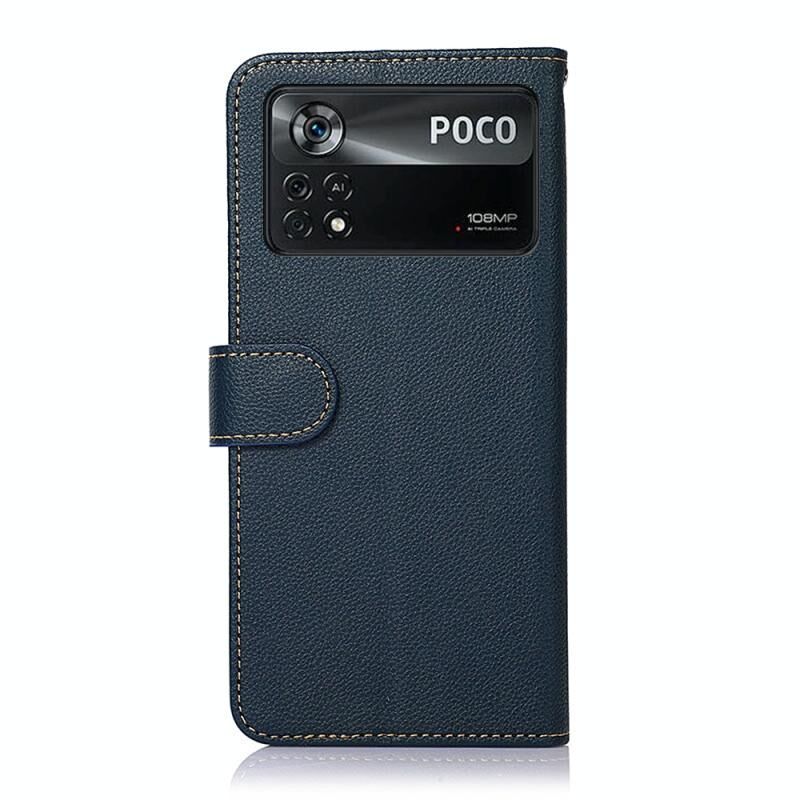 Για Xiaomi Poco M4 Pro 5G KHAZNEH Δερμάτινη Θήκη με Υφή Litchi RFID (Μπλε)