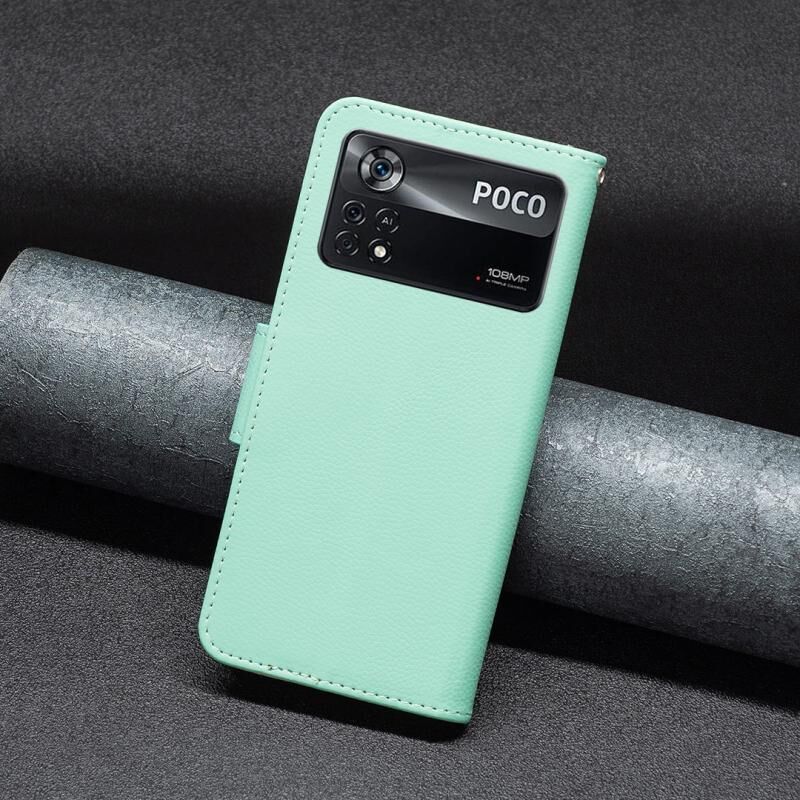 Για Xiaomi Poco M4 Pro 5G Litchi Texture Pure Color δέρμα τηλέφωνο υπόθεση (πράσινο)