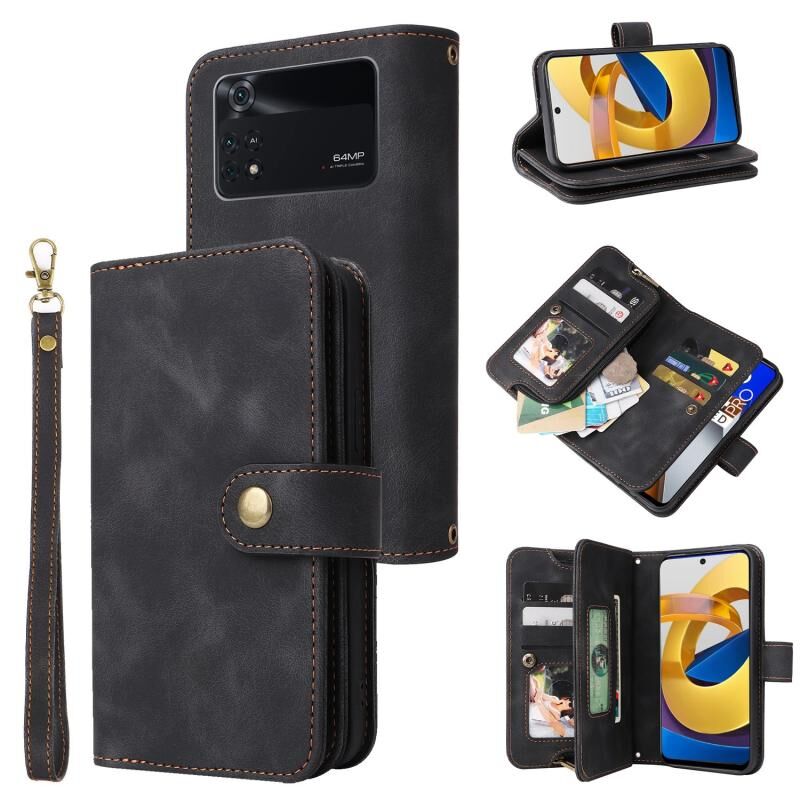 Για Xiaomi Poco M4 Pro 5G Πολυλειτουργική κάρτα Slot φερμουάρ πορτοφόλι δερμάτινη θήκη τηλεφώνου (μαύρο)
