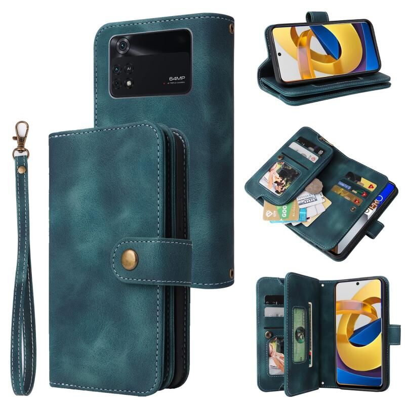 Για Xiaomi Poco M4 Pro 5G Πολυλειτουργική κάρτα Slot φερμουάρ πορτοφόλι δερμάτινη θήκη τηλεφώνου (μπλε)