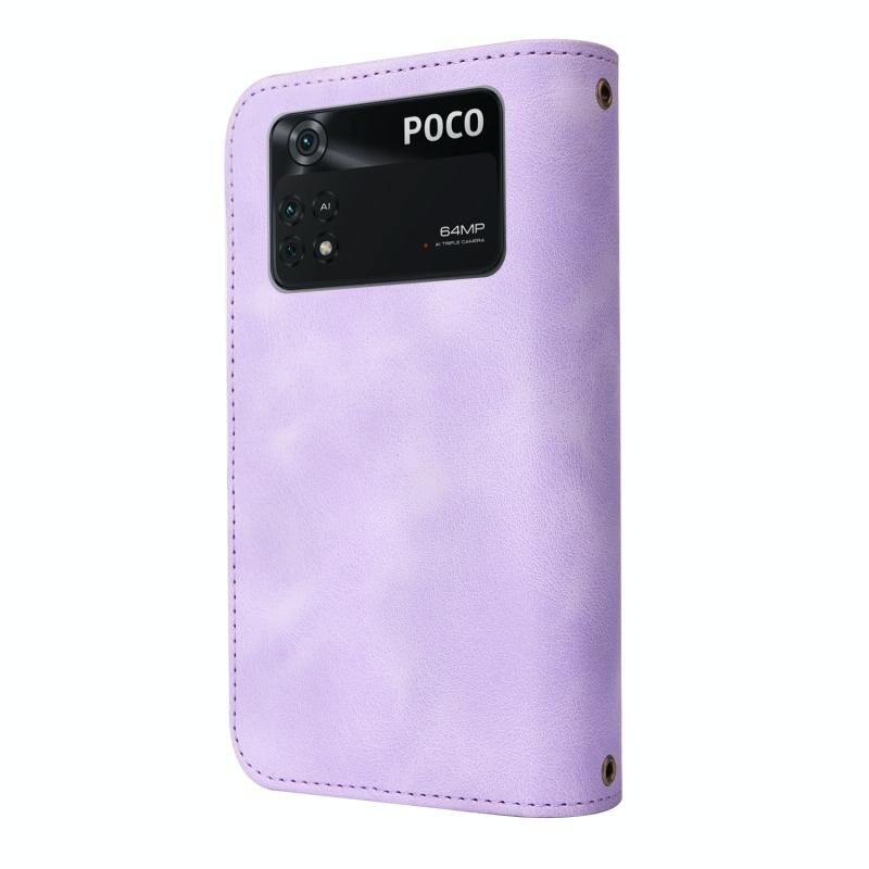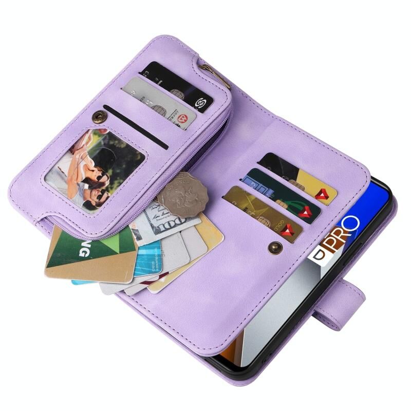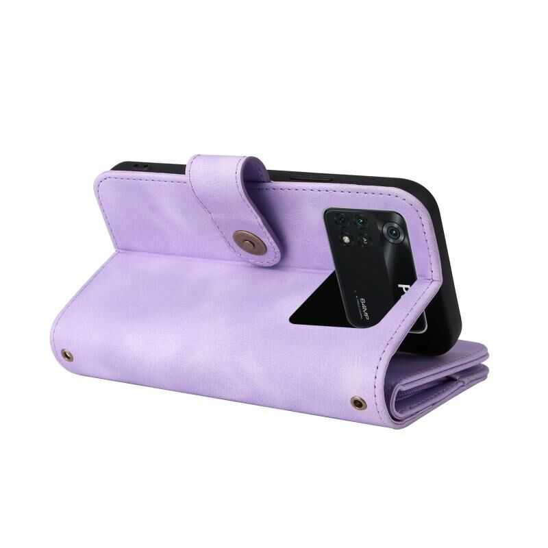 Για Xiaomi Poco M4 Pro 5G Πολυλειτουργική κάρτα Slot φερμουάρ πορτοφόλι δερμάτινη θήκη τηλεφώνου (μωβ)