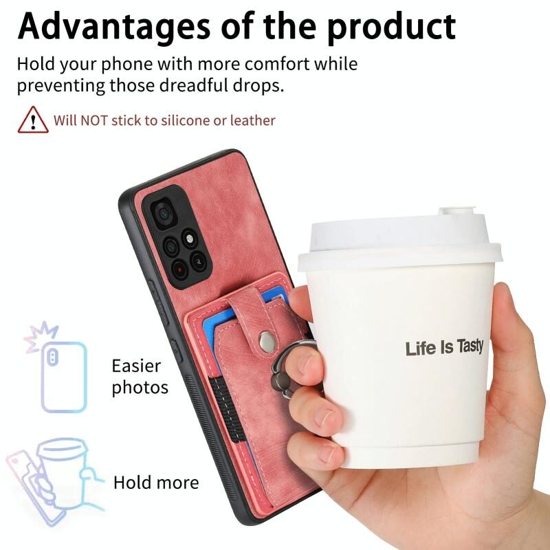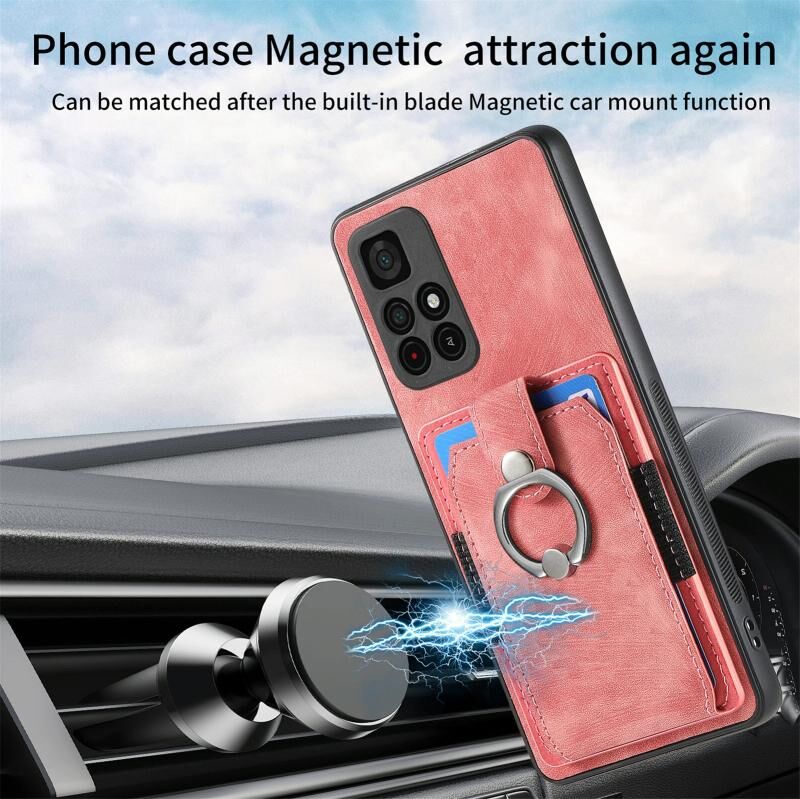 Για Xiaomi Poco M4 Pro 5G Ρετρό δέρμα αίσθηση δαχτυλίδι κάρτα πορτοφόλι υπόθεση τηλεφώνου (ροζ)