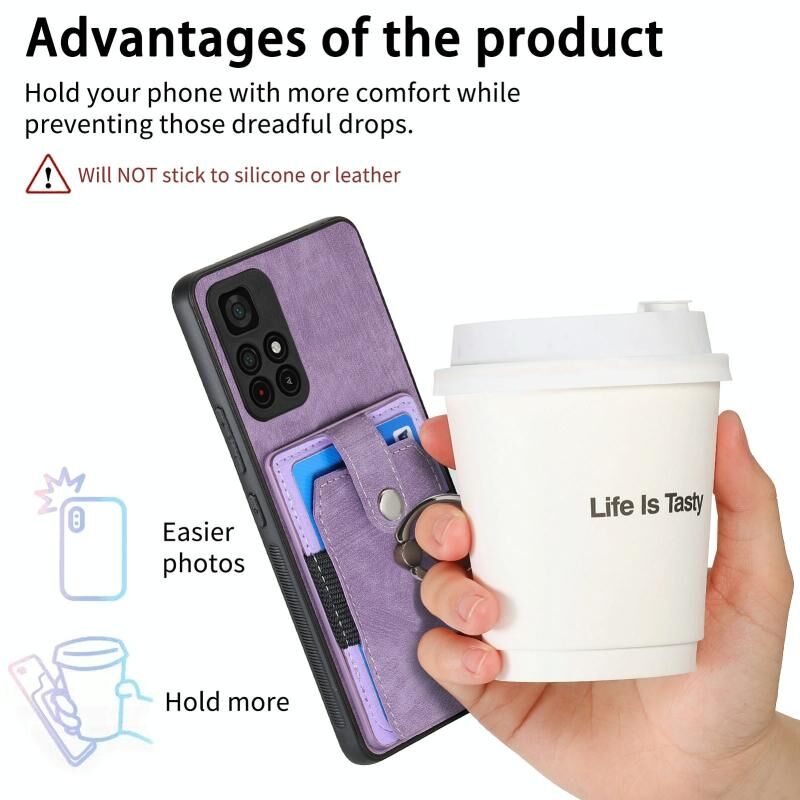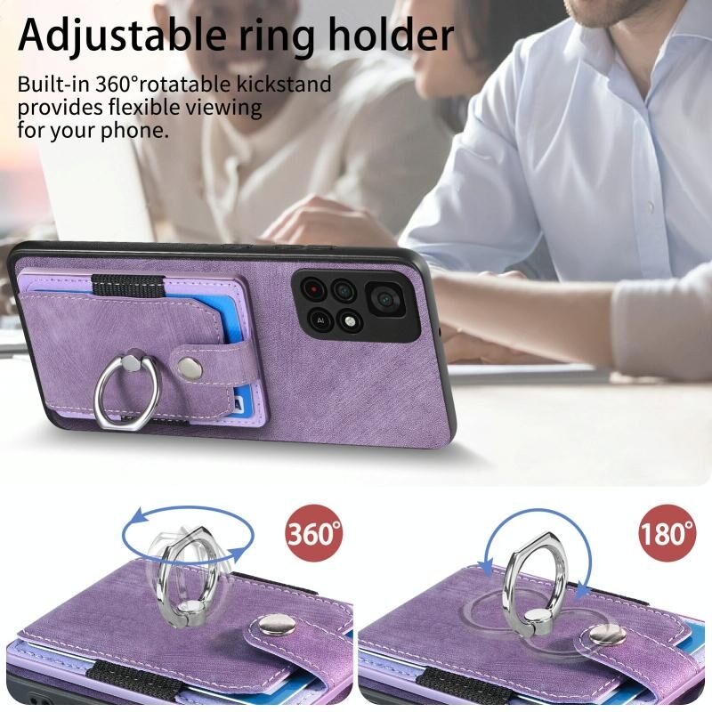 Για Xiaomi Poco M4 Pro 5G Ρετρό δέρμα αίσθηση δαχτυλίδι κάρτα πορτοφόλι υπόθεση τηλεφώνου (μωβ)