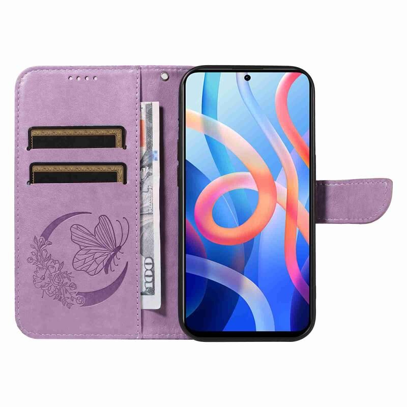 Θήκη τηλεφώνου από δέρμα με ανάγλυφο σχέδιο πεταλούδας Swallowtail για Xiaomi Poco M4 Pro 5G (Κόκκινο)