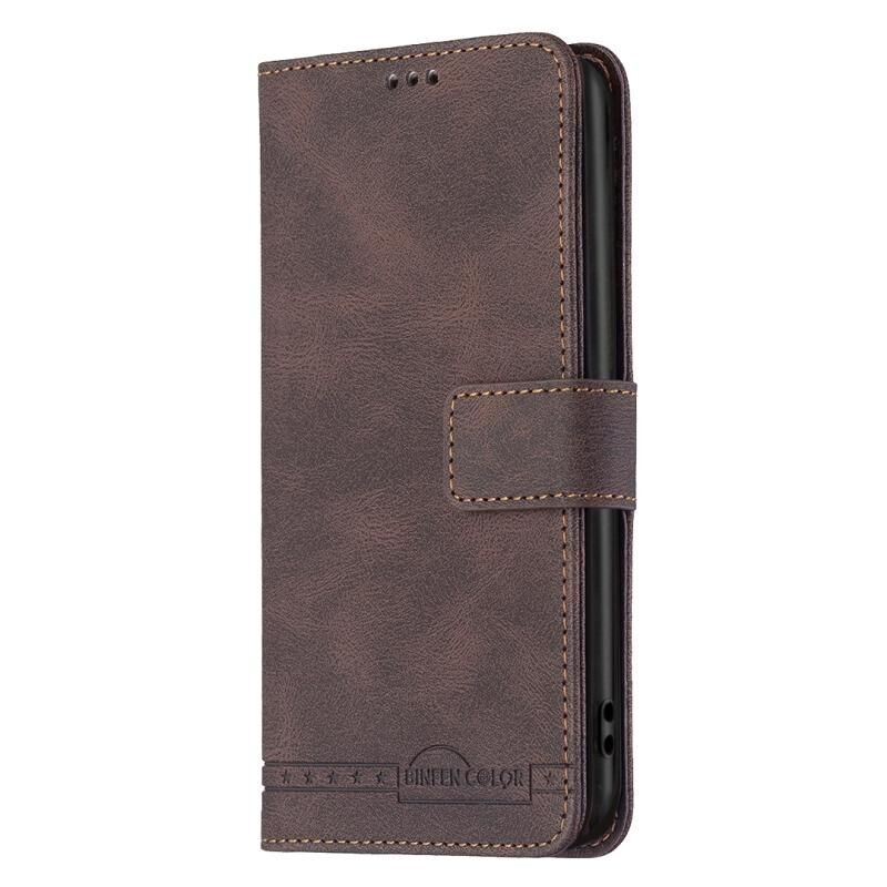 Για Xiaomi Poco M4 Pro BF09 Μαγνητική πόρπη RFID Flip δερμάτινη θήκη τηλεφώνου (Καφέ)