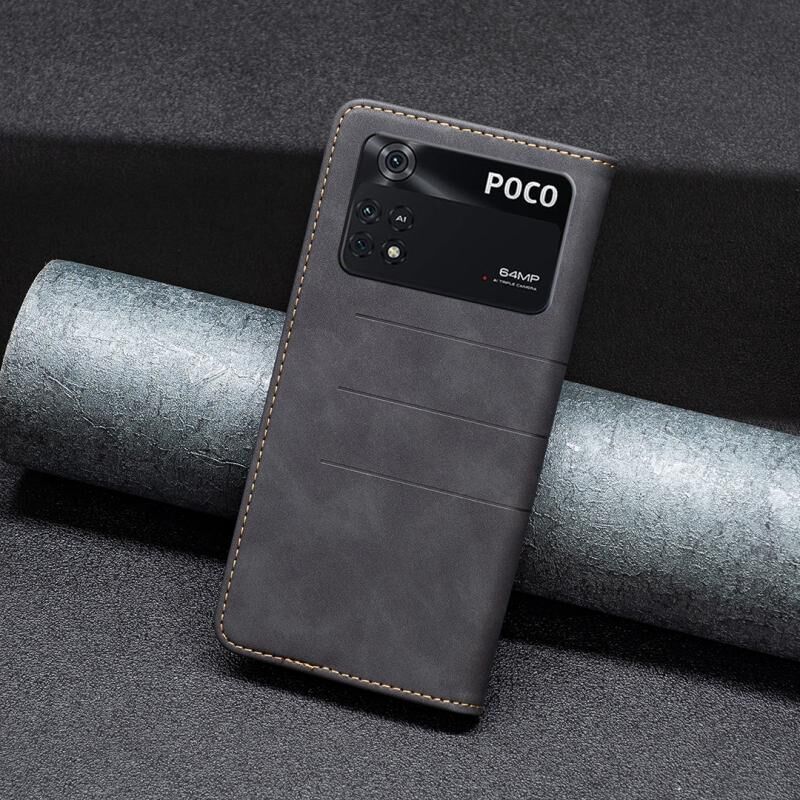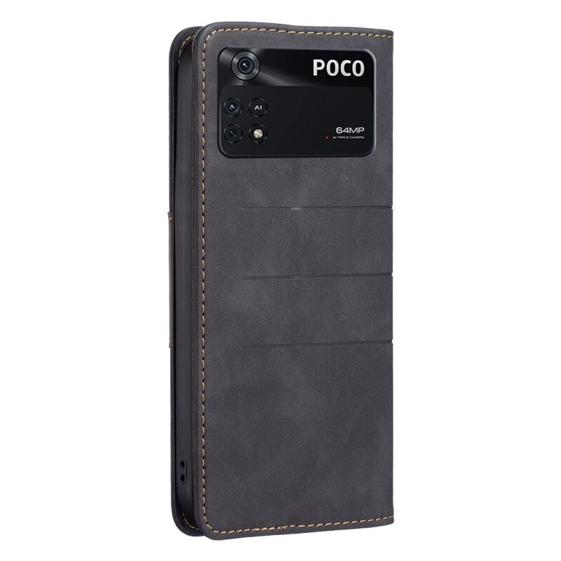 Για Xiaomi Poco M4 Pro BF10 Color Block Μαγνητικό Flip δερμάτινη θήκη τηλεφώνου (Μαύρο)
