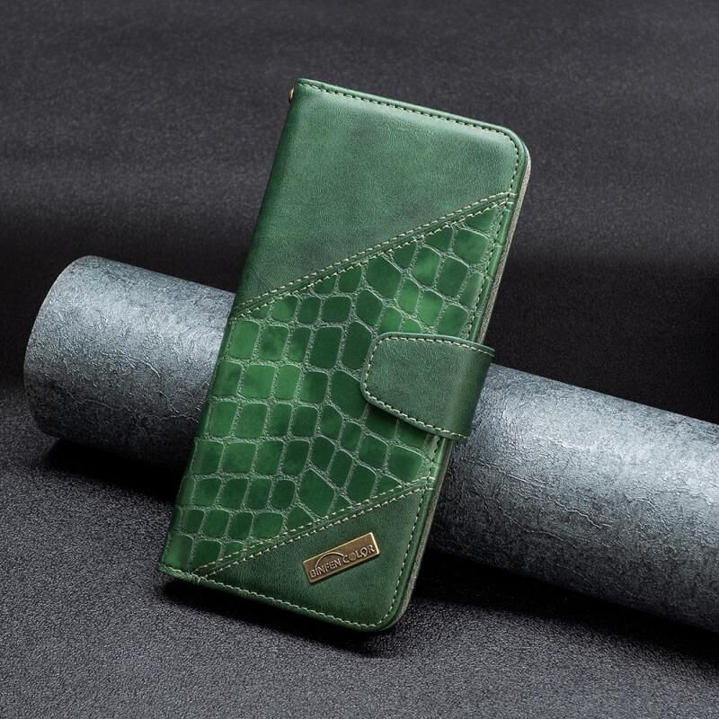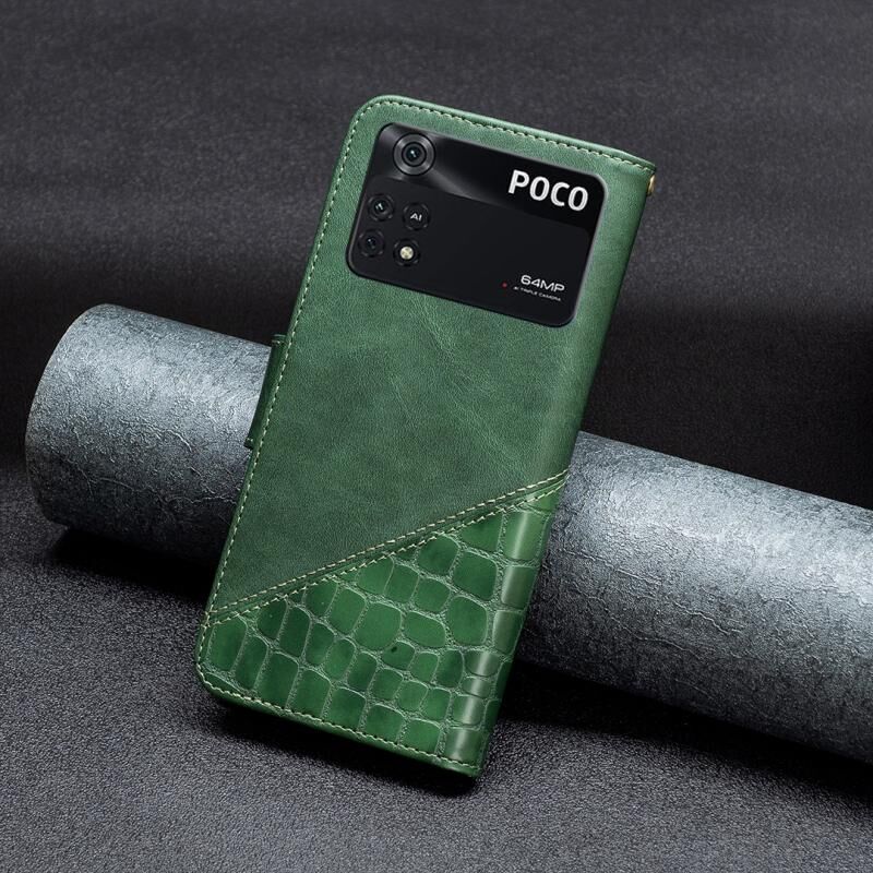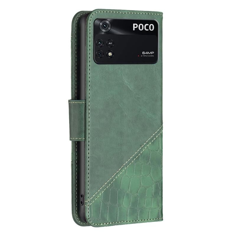 Θήκη τηλεφώνου από δέρμα με υφή κροκόδειλου και χρωματικό σχέδιο για Xiaomi Poco M4 Pro (πράσινο)