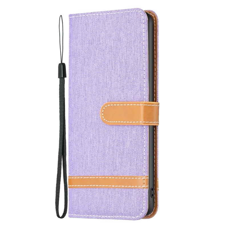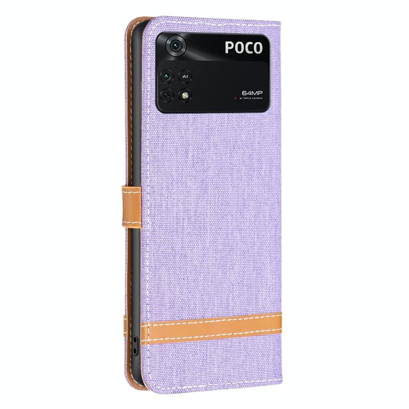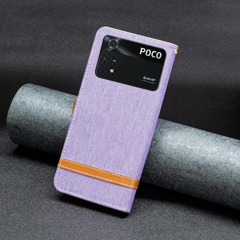 For Xiaomi Poco M4 Pro Color Block Denim Texture Leather Phone Case(Purple)
