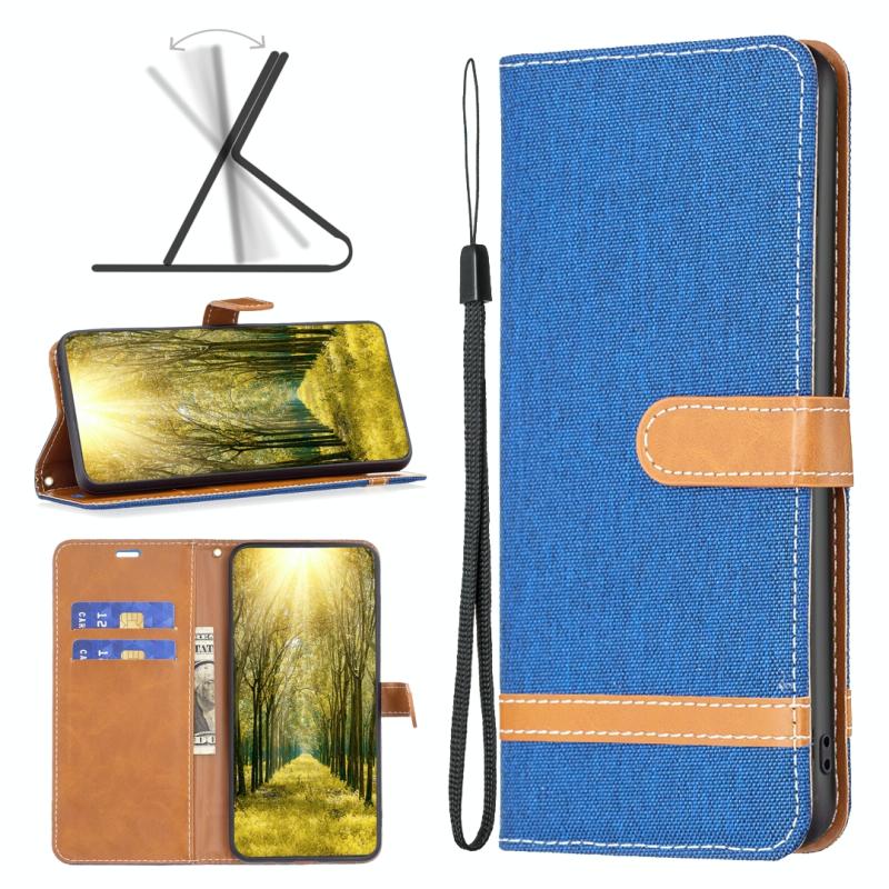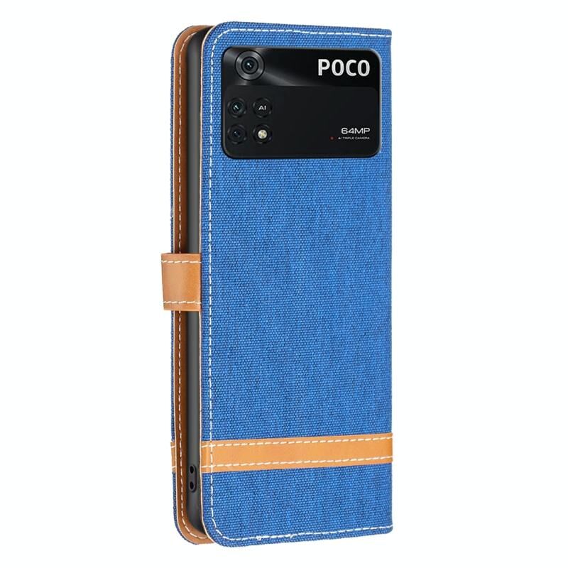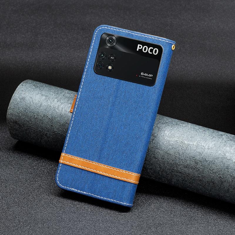 Θήκη τηλεφώνου Xiaomi Poco M4 Pro με υφή denim και δερμάτινη υφή σε μπλε χρώμα (Μαύρο)