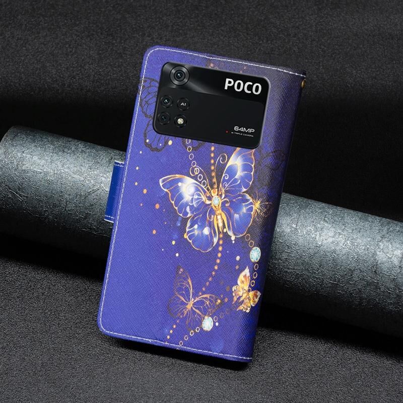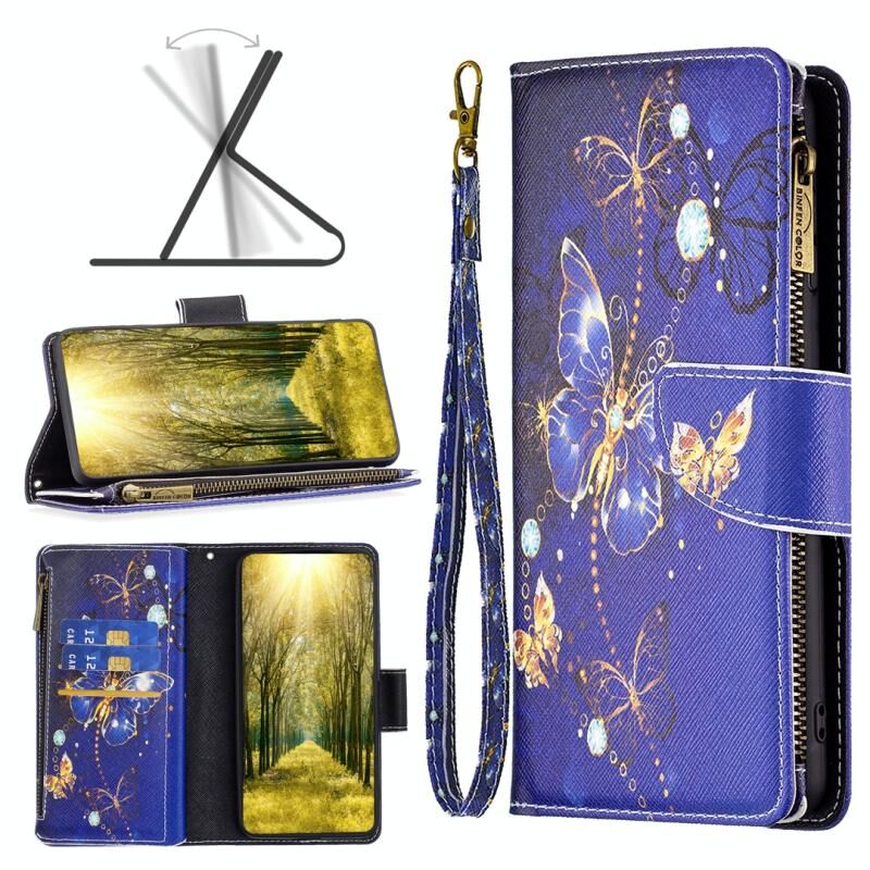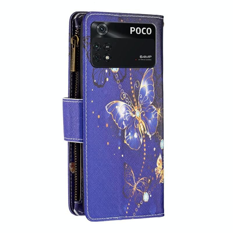 For Xiaomi Poco M4 Pro Colored Drawing Pattern Zipper Leather Phone Case(Purple Butterfly)