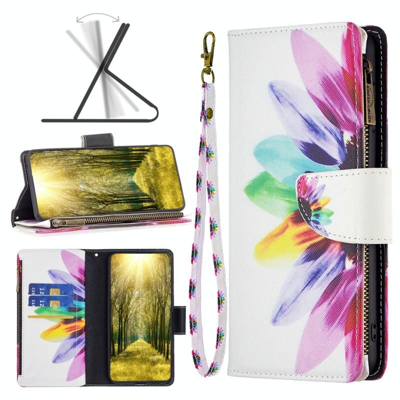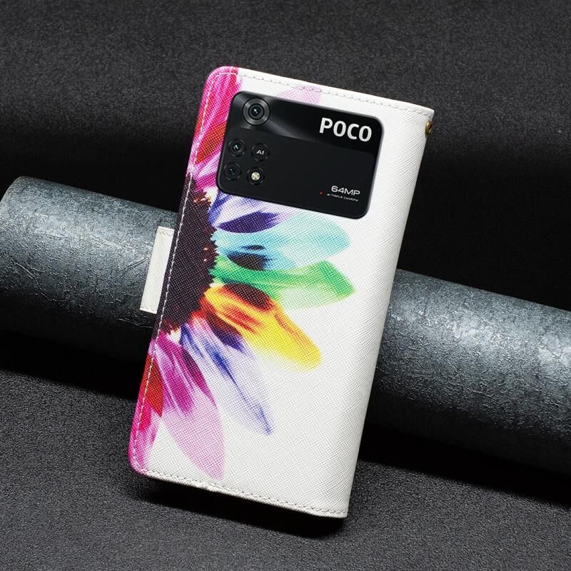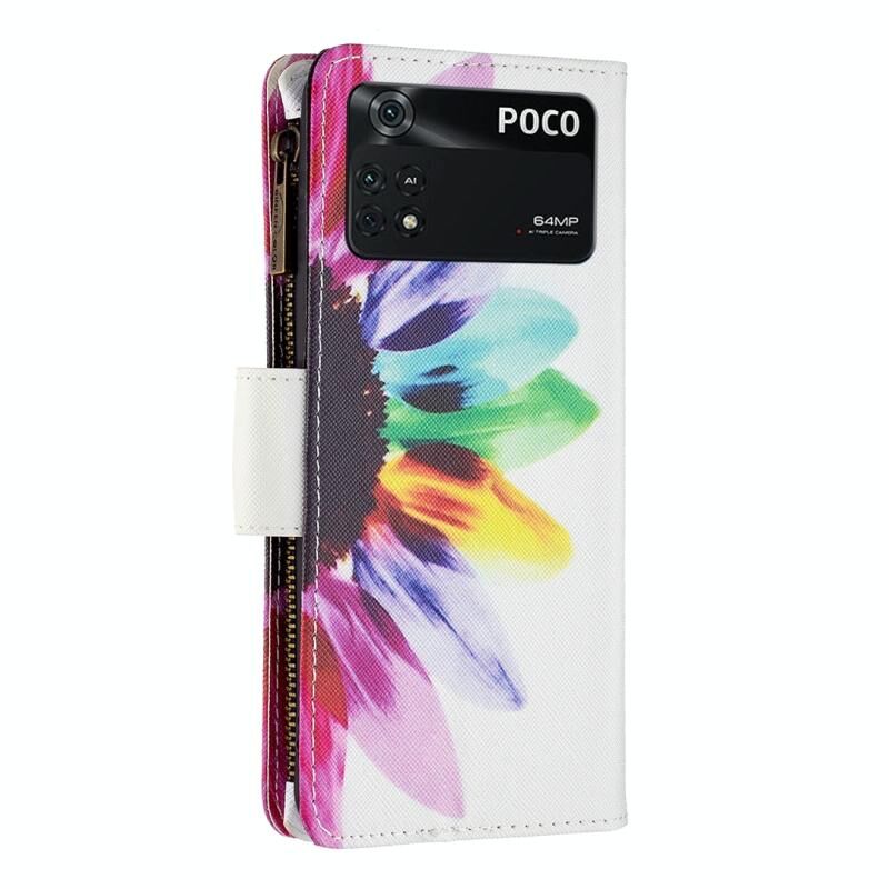 For Xiaomi Poco M4 Pro Colored Drawing Pattern Zipper Leather Phone Case(Sun Flower)