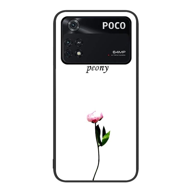 Θήκη τηλεφώνου από χρωματιστό βαμμένο γυαλί για Xiaomi Poco M4 Pro (Ένα Λουλούδι)
