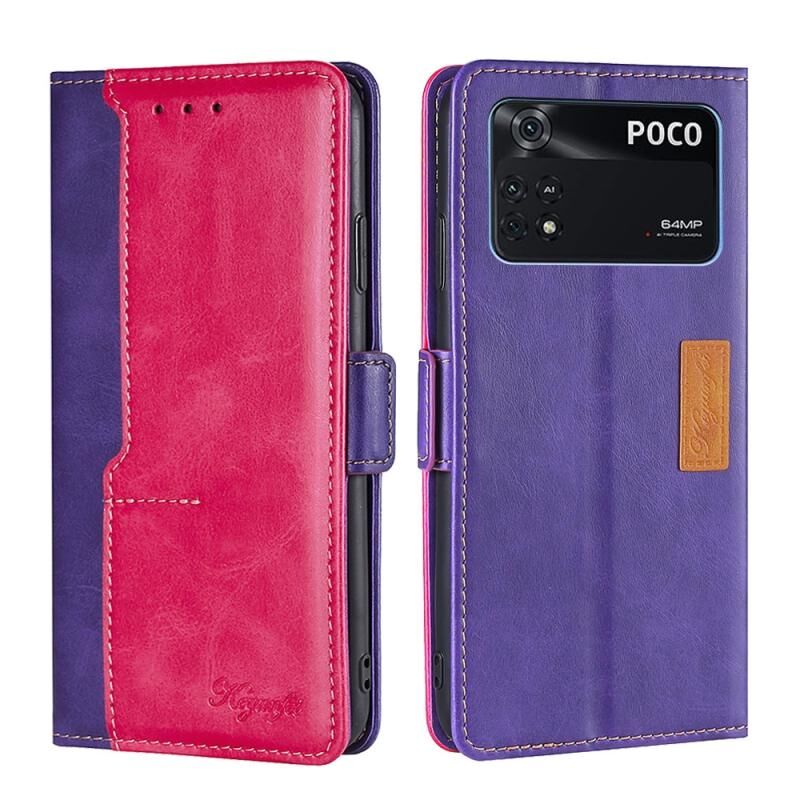 Θήκη τηλεφώνου δερμάτινη με πλευρικές αγκράφες και αντίθεση χρωμάτων για Xiaomi Poco M4 Pro (Μπλε + Γκρι)