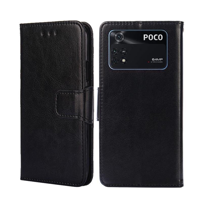 Θήκη τηλεφώνου από δέρμα με κρυσταλλική υφή για Xiaomi Poco M4 Pro (Μαύρο)