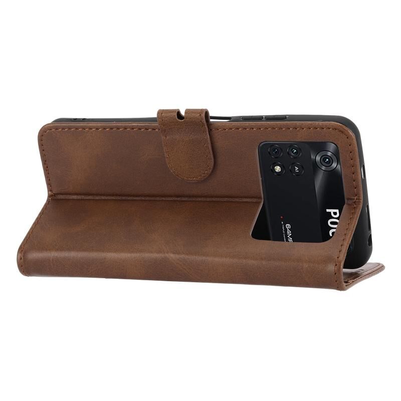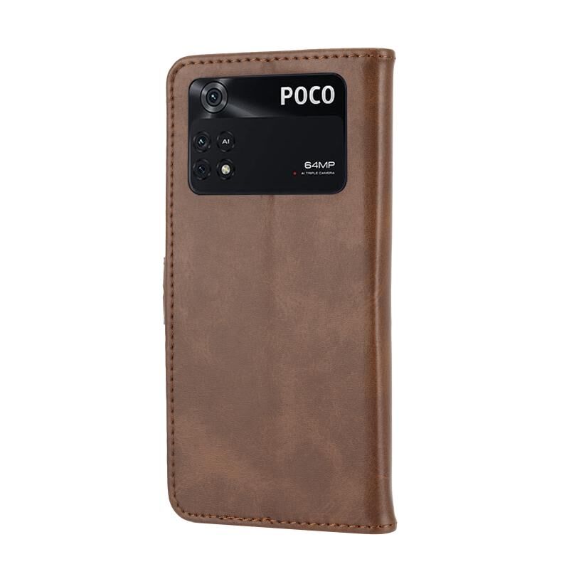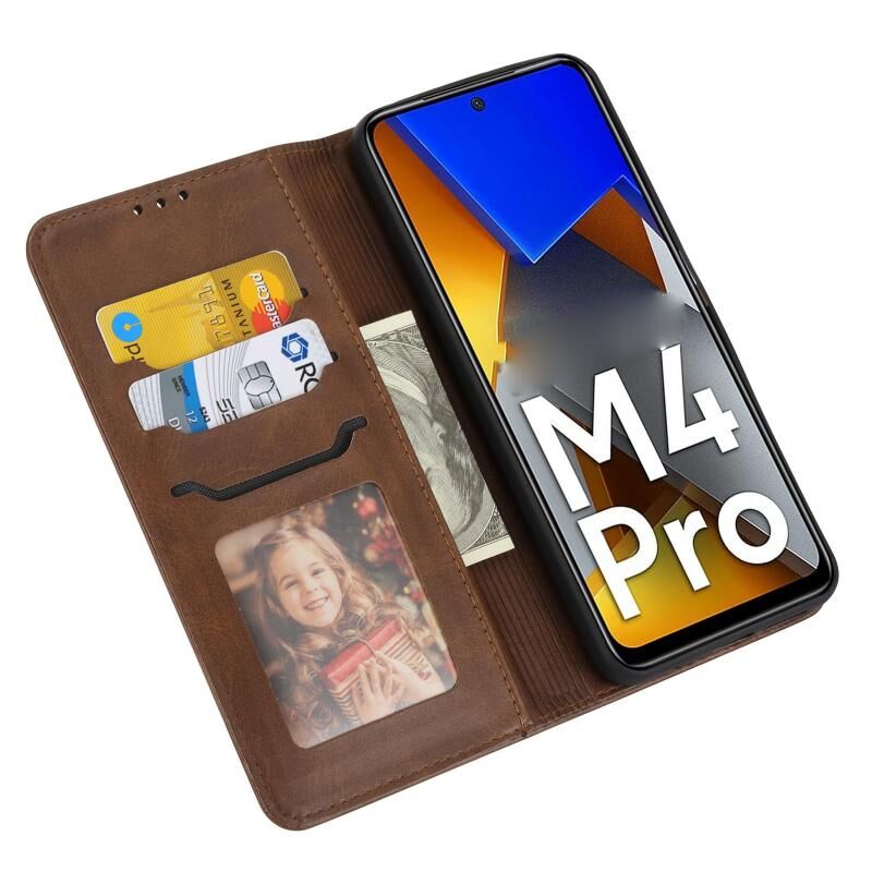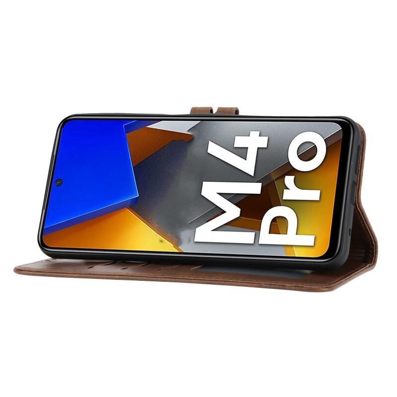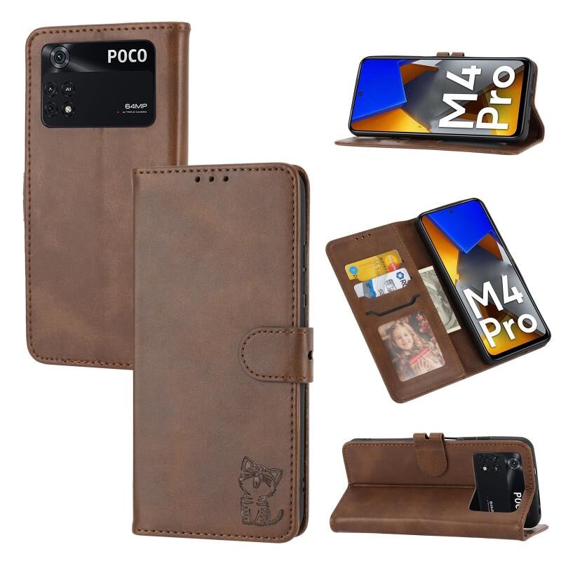 Θήκη τηλεφώνου δερμάτινη με ανάγλυφο σχέδιο χαρούμενης γάτας για Xiaomi Poco M4 Pro (Καφέ)