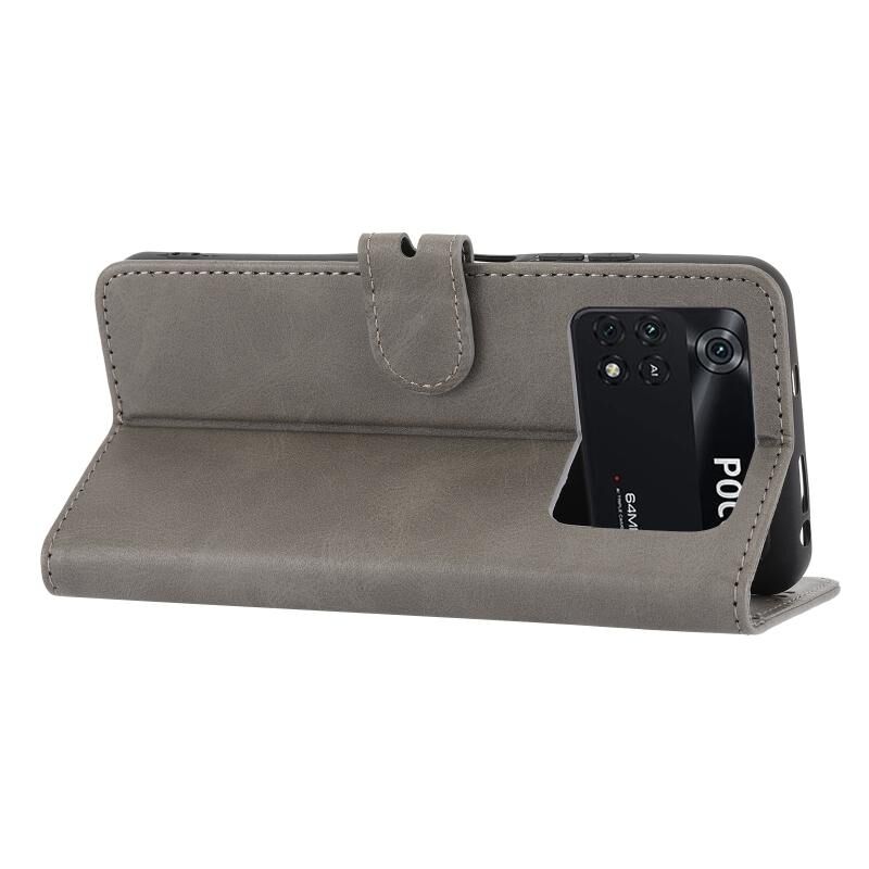 Θήκη τηλεφώνου δερμάτινη με ανάγλυφο σχέδιο χαρούμενης γάτας για Xiaomi Poco M4 Pro (Γκρι)