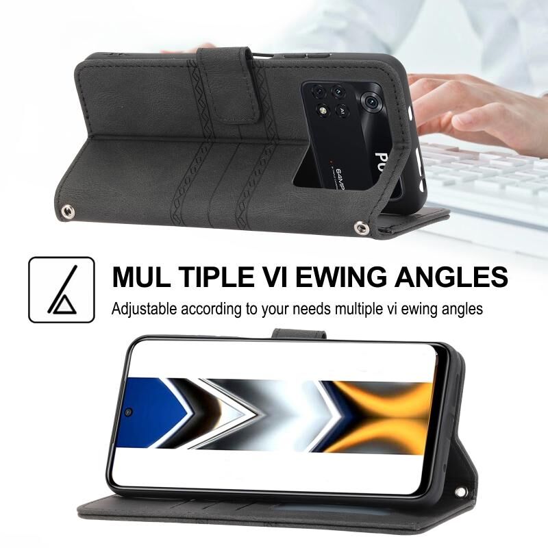 Θήκη τηλεφώνου δερμάτινη, οριζόντια, με μαγνητικό κούμπωμα και ανάγλυφο σχέδιο ριγών για Xiaomi Poco M4 Pro (Ροζ)