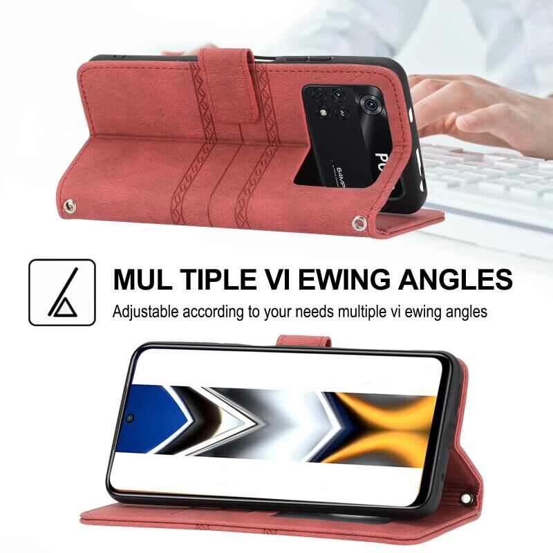 Θήκη τηλεφώνου δερμάτινη, οριζόντια, με μαγνητικό κούμπωμα και ανάγλυφο σχέδιο ριγών για Xiaomi Poco M4 Pro (Ροζ)