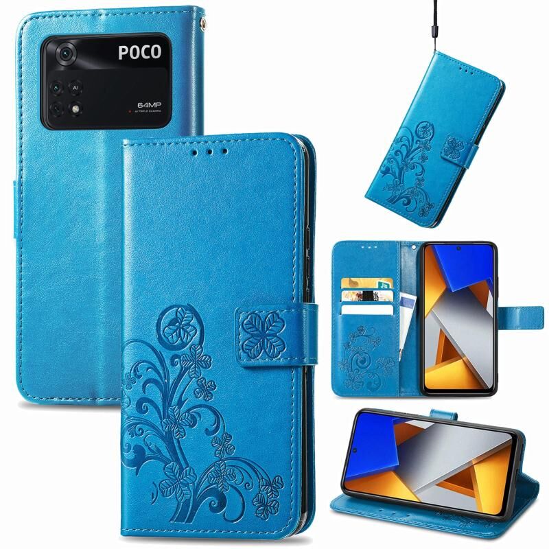 Θήκη τηλεφώνου δερμάτινη με ανάγλυφο κούμπωμα σε σχήμα τριφυλλιού για Xiaomi Poco M4 Pro (Χρυσό ροζ)