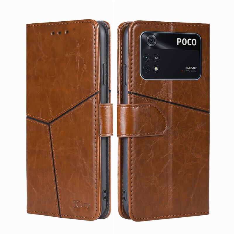 Θήκη τηλεφώνου από δέρμα με οριζόντιο άνοιγμα και γεωμετρική ραφή για Xiaomi Poco M4 Pro (Μαύρο)