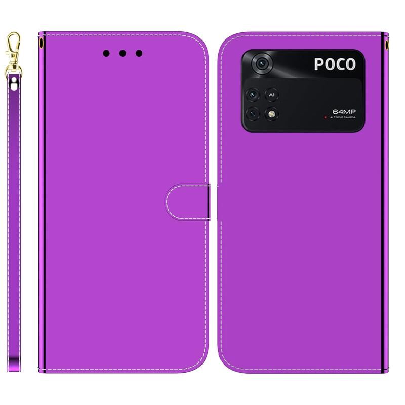 Θήκη τηλεφώνου από δέρμα με οριζόντιο άνοιγμα και καθρεφτισμένη επιφάνεια για Xiaomi Poco M4 Pro (Ασημί)