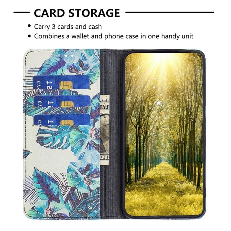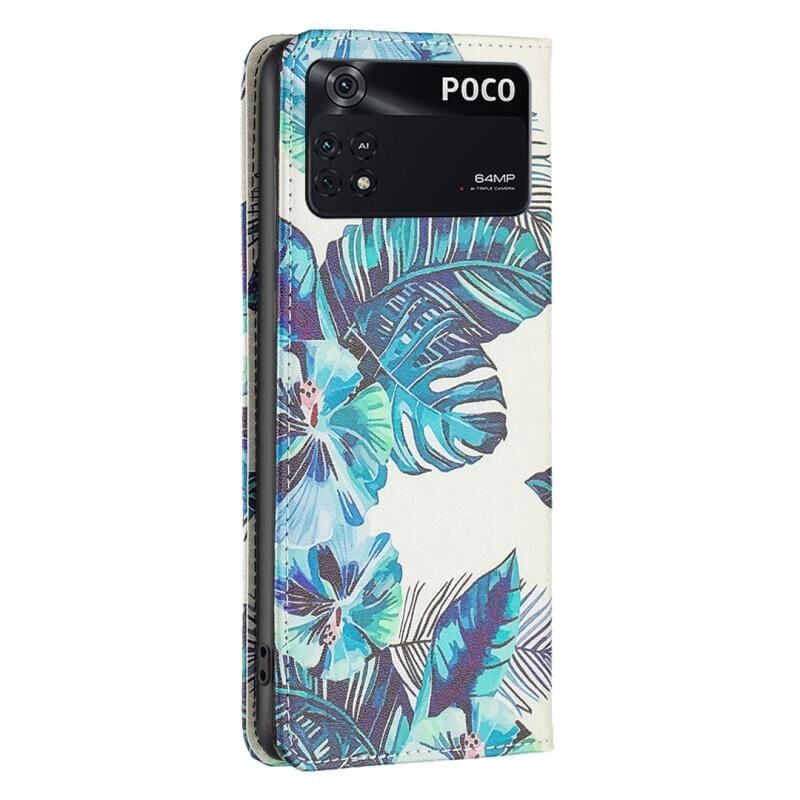 Θήκη κινητού τηλεφώνου Xiaomi Poco M4 Pro αόρατη μαγνητική βαμμένη δερμάτινη (Μπλε Φύλλα)