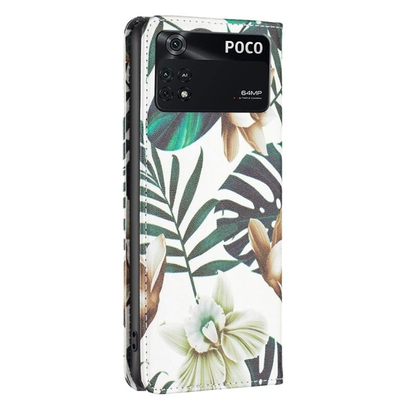 Θήκη κινητού τηλεφώνου Xiaomi Poco M4 Pro αόρατη μαγνητική βαμμένη δερμάτινη (Μπλε Φύλλα)